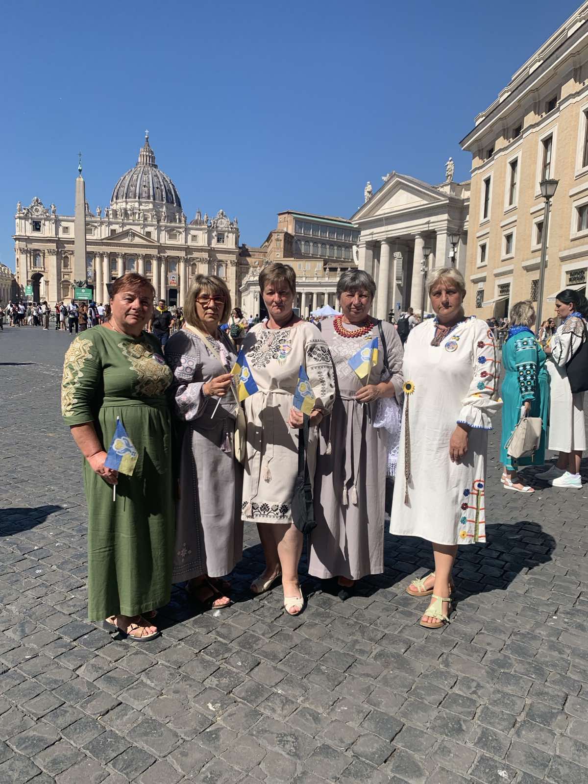 А 6 вересня матері-паломниці прибули на площу Святого Петра в Римі. Це місце було частиною ювілейного 2025 року, що залучив до Риму паломників зі всього світу та було місцем, де в цей час ще були відчинені Святі Двері базиліки Святого Петра. Це є унікальною подією, яка відбувається раз на 25 років під час Ювілею. Тож на площі було багато паломників, які прибули до Риму, щоб пройти через ці двері, які символізують прощення та примирення з Богом, початок нового життя.