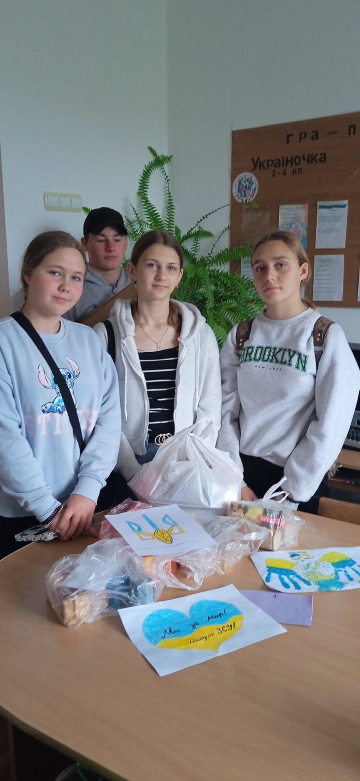 Старшокласники, звісно, також стали активними учасниками цього доброчинного заходу:вони зібрали велику кількість необхідних речей,продуктів для воїнів-односельців.