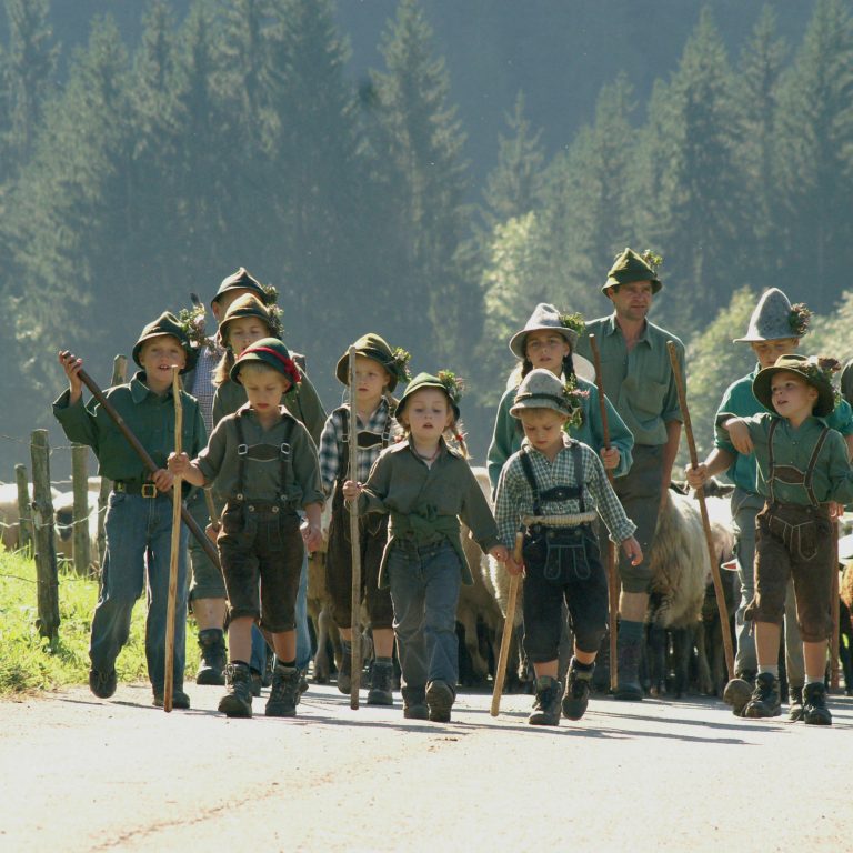 Almabtrieb /альмабтріб - перегін худоби/ - урочисте повернення тварин з гір назад додому, до своїх господарів. Якщо за сезон у стаді не загинула жодна тварина (ВРХ, вівці, кози чи коні) , то перших у череді прикрашають вінками з квітів та гілочок ялини, вівцям та козам вішають на шию віночки з вплетеними штучними квітами, тому що натуральні вони можуть з'їсти. Попереду стада ідуть пастухи зі своїми сім'ями, одягнені у національний одяг - короткі шкіряні штани на підтяжках, біла або картата сорочка та обов'язково фетровий капелюх з квітами та пір'їнами. Кожен з них тримає у руці палицю, на яку спирається при ходьбі у горах і одночасно використовує її, щоб підганяти худобу. Зустрічають усіх гучними оплесками та під музику. Худобу заганяють у тимчасово встановлені кошари, звідки їх позабирають власники/фермери, а самі винуватці цього дійства і гості спілкуються між собою, їдять традиційні регіональні страви: підсмажені ковбаски різних видів, що готуються тут на місці, чорний хліб із твердим сиром, який розплавляється на спеціальному пристрої, посипаний цибулею та червоним перцем, картопля фрі, п'ють пиво або вино. На десерт пропонують багато різних тортів та тістечок, випечених самими гостями та організаторами заходу.