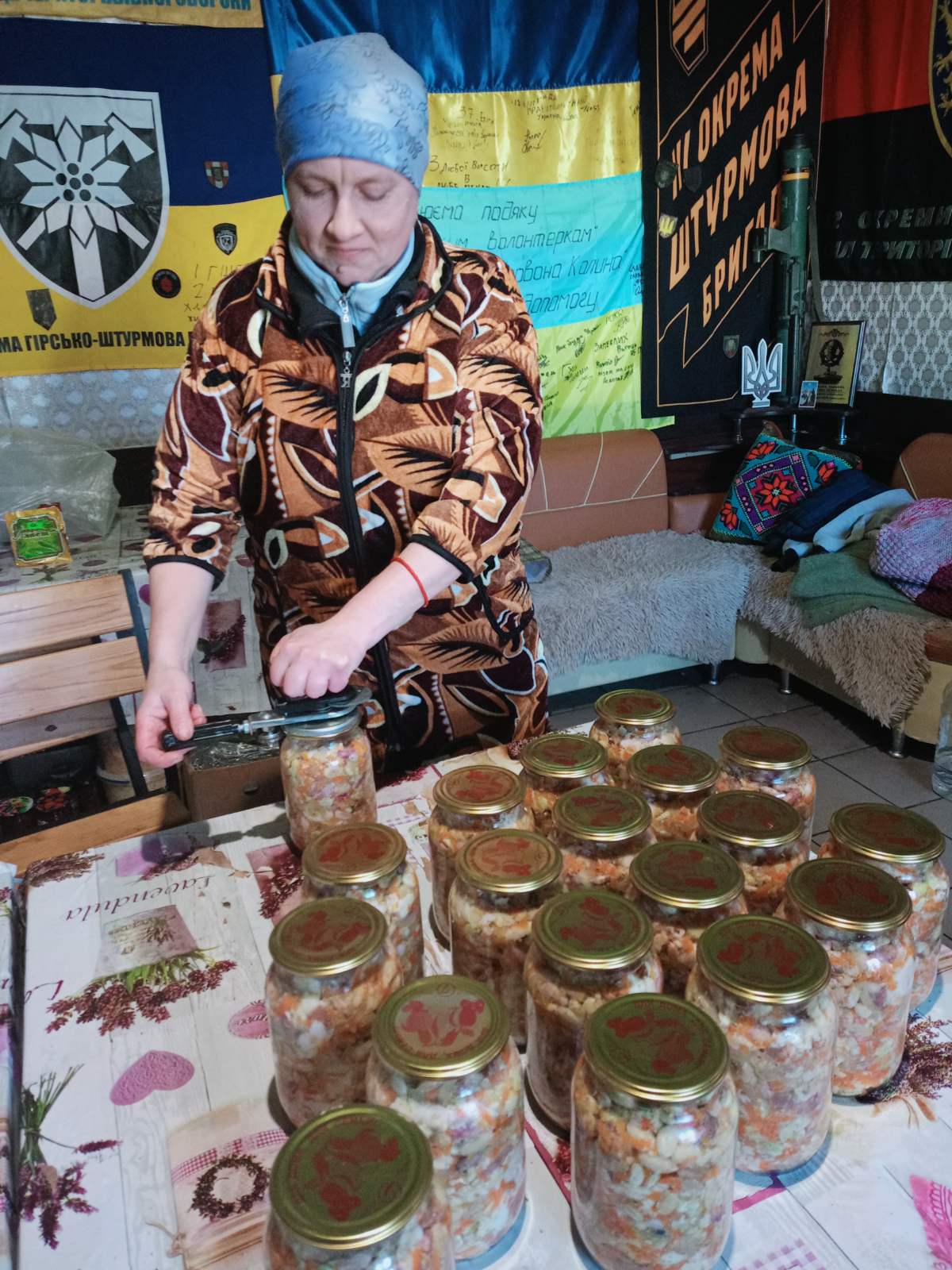 • Відправили також окопні свічки, виготовив їх Анатолій Шведа з Шибени,- каже Галина Іванівна, - дякуємо цій працьовитій людині. За окопні свічки дякуємо також учням та вчителям Терешківського ліцею Антонінської громади, ми і  їх  відіслали у Харківську область, у Золочів. Дякуємо добрим людям, які нам допомагають, надають кошти, продукти, випікають. Дякую моїм землякам з Корчівки: Валентині Гудз (1000 гривень), Оксані Цинюк (1000 гривень), Ользі Балан за цибулю, сало та смалець; за випічку дякую Антоніні Мартинюк, Анастасії Додарчук, Галині Налісніковській. Дякую добрим людям з Колок: Таїсії Демедюк (500 гривень, квасоля), Людмилі Хитрун (400 гривень, квасоля), Людмилі Конобі – за яйця, Валентині Члек – за відерця, Анатолію Демедюку (200 гривень). Готуємося до наступного відправлення, робимо каші, квасимо, тушкуємо капусту. Працюємо щодня, треба багато всього зробити.