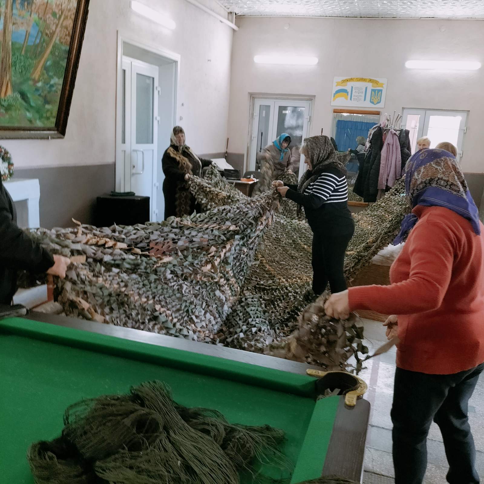 - І от на сьогодні ми вже сплели понад 20 кілометрів сіток, - розказує волонтерка, завідуюча Святецькою сільською бібліотекою Віра Букевич, - вже ми так наловчилися, що за день, з дев’ятої до тринадцятої години, можна сплести одну сітку, найбільшу 6 на 9, а працюємо щодня, понеділок-п’ятниця. Щоб це робити безперебійно, виконувати запити наших бійців-земляків, треба закупити основу для сітки та спанбонд. Тож де ми беремо на це гроші: час від часу проводимо благодійні ярмарки, частину коштів спрямовуємо на придбання обладнання для наших хлопців, як от авто, РЕБи, прилади нічного бачення і таке інше. Другу частину відкладаємо на придбання основи для сітки та спанбонду. Оскільки треба зібрати значну суму, ще оголошуємо збір на картку; в селі хтось принесе готівку, а перекази роблять наші земляки, як живуть в Києві, інших містах, а також за кордоном – у Польщі, Італії, США. От ми нещодавно закупили матеріалів на 30 тисяч гривень, 18 тисяч гривень пішло на три бухти основи для сітки, а за 12 тисяч закупили чотири рулони спанбонду.