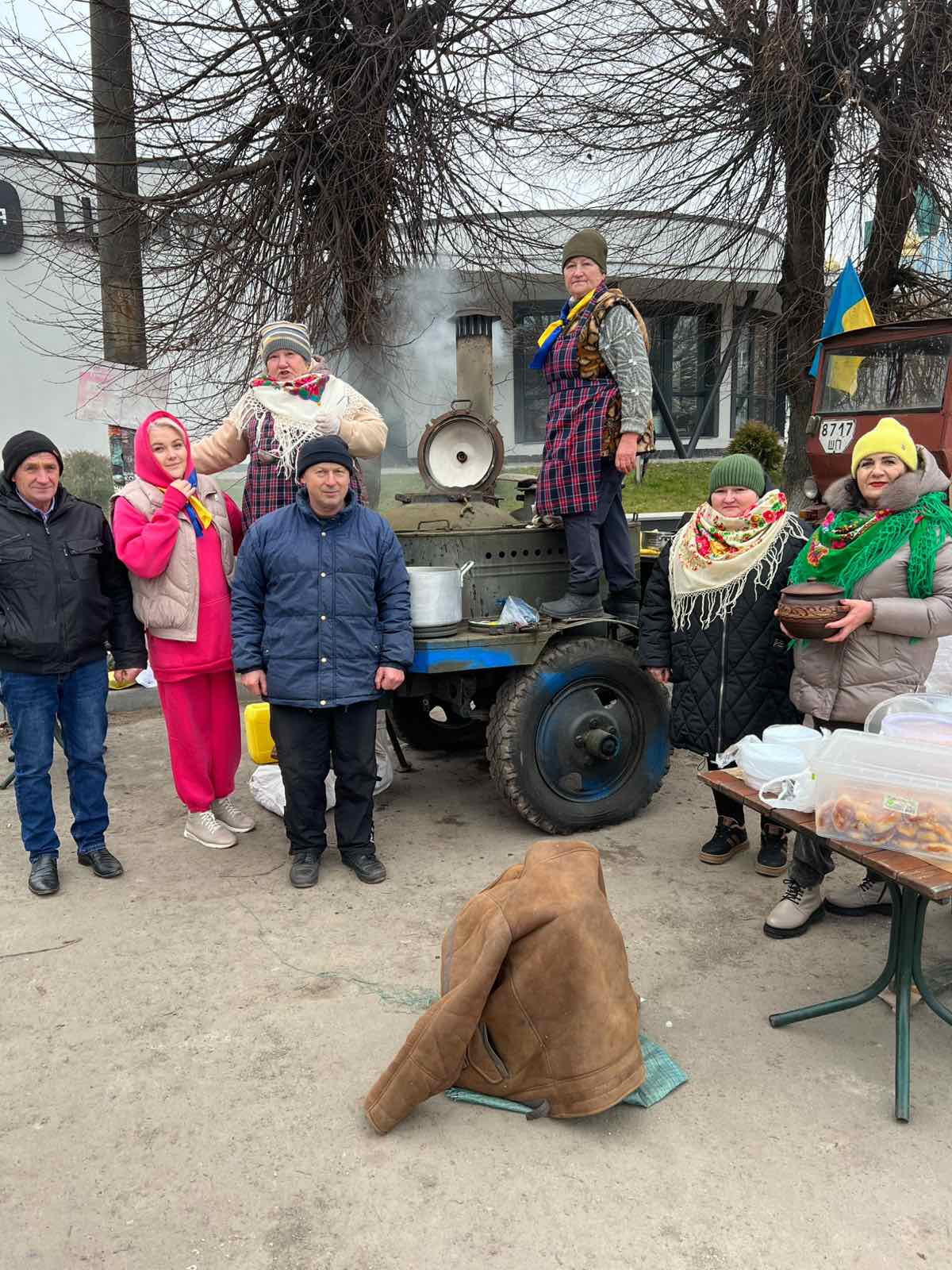 А в неділю, 7 грудня, на центральному майдані Теофіполя з нагоди Міжнародного Дня волонтера та Дня Збройних Сил України відбулося благодійне частування козацьким обідом. Організаторами заходу виступили Гуманітарний штаб Теофіпольщини та ГО «Благодійний фонд Добра, Надії та Любові». Хто все підготував: польову кухню надав відомий благодійник Анаталій Вальчук з Новоставець, а також рибу на юшку. Сало та м’ясо на козацький куліш надав Андрій Петринюк, картоплю, цибулю, моркву звечора начистили  та підготували Олена Глов’юк, Наталія Гонюк та Ніна Баб’юк з Новоставець. А з восьмої ранку у неділю на майдані Анатолій Вальчук та Василь Окаєвич ту кухню розпалили, а Олена Глов’юк та Ніна Баб’юк пильнували юшку та куліш. І на десяту ранку все вже було готове. Господині з Кривовільки, невтомні Надія Вальчук, Тетяна Вальчук, Тетяна Сивак, Катерина Паранюк, Валентина Братюк  наварили вареників з солодким сиром, з солоним сиром та картоплею, з капустою та вишнями. Аж десять трилітрових відерець! А Галина Лепетун зі своїми Наталією Семенюк, Лілією Хитрун, Оленою Поліщук, Галиною Глабай та Галиною Хитрун насмажили пиріжків з горохом та часником, картопляних зразів з капустою. Все розставили на столиках у череп’яному посуді, було дуже симпатично, ще ж була тут квашена капуста, огірки та помідори.