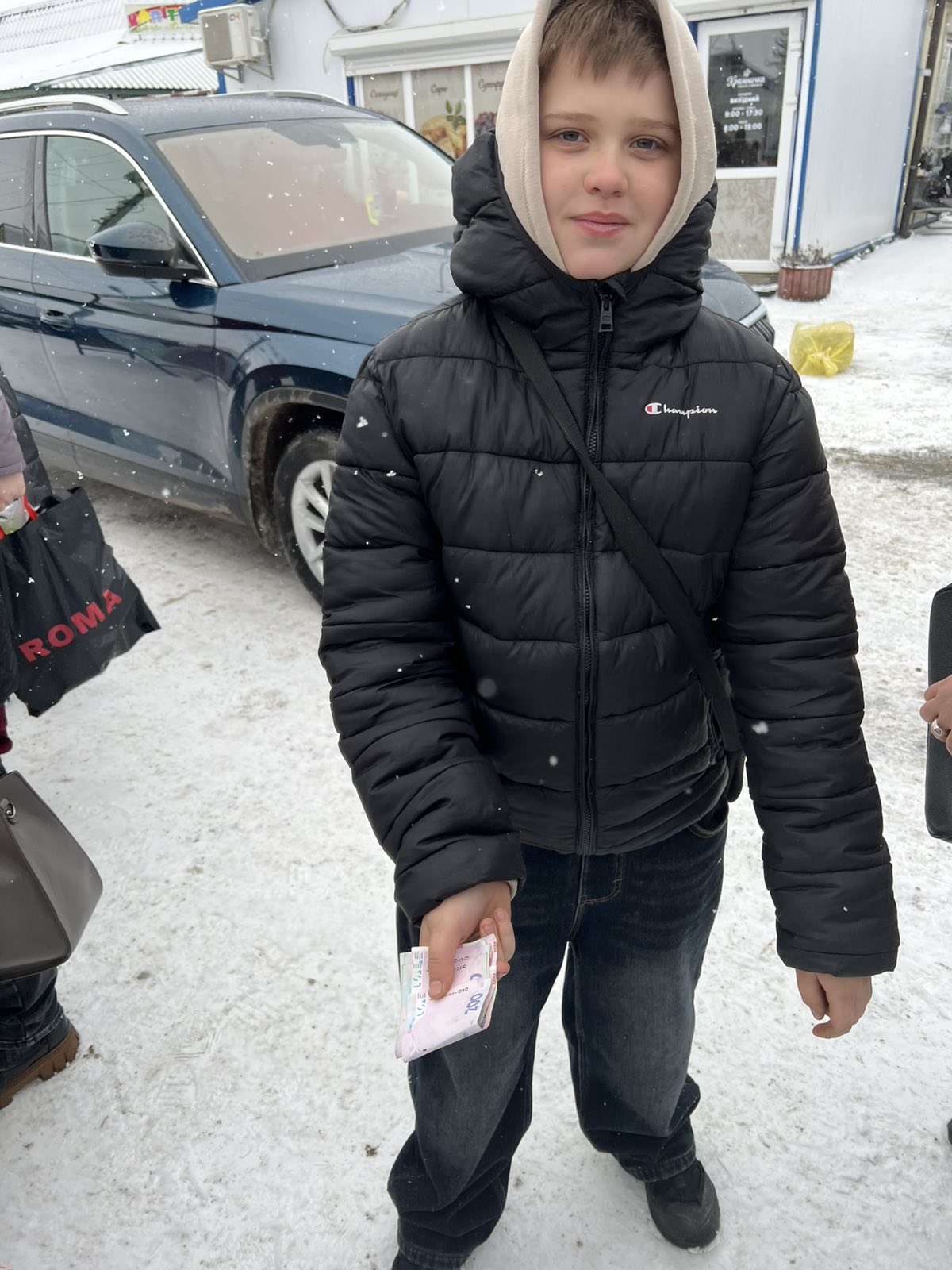 - Але людей трохи було, – каже Наталія Гонюк, – вторгували ми 12600 гривень, з них 8000 гривень переказали бійцям підрозділу аеророзвідки добровольчого батальйону імені шейха Мансура. Дякуємо всім, хто цього негожого дня прийшов до нас, дякуємо Іллюші Домчуку з Гаврилівки, це внук нашого Василя Гандовського. Цей хлопчик разом друзями наколядували 1000 гривень, він приїхав з дідусем на ярмарок та передав нам ці гроші. Зворушливо нам було бачити і донечку бійця Віктора Бавера, яка вкинула в скриньку 100 гривень. Кошти, які в нас залишилися, спрямуємо на закупівлю продуктів для відправлення посилок та для наступного ярмарку. А ще до нас підійшла Галина Глов’юк, мама загиблого бійця Віталія Глов’юка з Іванівки за Базалією, віддала нам пакет з його новими придбаними речами, не встиг ними скористатися. Ми всі плакали, співчували, розділяли її страшне горе.