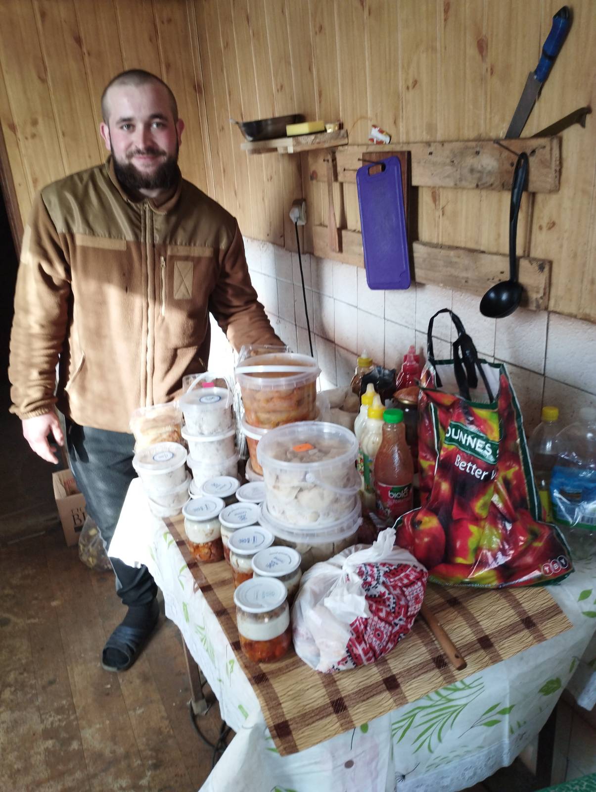 - Почну з приємної звістки, - розказала нам Наталія, - це сталося напередодні, коли Філія «Рідний край» ПрАТ «Зернопродукт МХП» через нас передала бійцям значну допомогу - тушковане м’ясо, сальну намазку з часником та приправами, солодощі. Тому висловлюємо щиру вдячність директору Філії Юрію Федорчаку, адже постійно підтримує наших захисників, вже неодноразово надавав допомогу нашому волонтерському підрозділу. Окрема подяка регіональному менеджеру БО БФ «МХП – громаді» Людмилі Баранчук, адже вона безпосередньо займалася цим проєктом. Дякуємо кожному працівнику Філії, хто долучився до цієї доброї справи. Всі ці продукти ми розклали в посилки. Дякую моїй невтомній команді, моїм працьовитим дівчатам, які наготували смачні домашні страви. У Кривовільці приготували каші з м’ясом, голубці, гречаники, картопляні зрази з капустою, квашену капусту. В Новоставцях – вареники з різною начинкою, млинці з м’ясом. Дякую Людмилі Сперчун, яка з Іспанії постійно нам донатить, за ці кошти ми маємо змогу купувати продукти, посуд, все, що необхідне для відправлення. Дякую Василю Окаєвичу, який надав яблука та постійно нам допомагає. Дякую нашій Ользі Марценюк за шкарпетки, а майстриням Анісії Плескачовій, Юлії Городовій та Людмилі Перчеклій з селища цукрового заводу - за теплі в’язані шкарпетки. Все це, а також овочі (хто замовляв,) ми разом з Маєю Окаєвич та Лесею Мельничук відправили. Знову хочу подякувати працівникам відділення Нової пошти, адже допомагають нам складати посилки, це нелегка робота. Вже й ми фотозвіти отримали. Коли дивлюсь на наших хлопців, стискається серце: вони тримають небо над нами, завдяки їм ми тут просто живемо. Тож знайте, наші рідні, ви – не самі, ми з вами до самої перемоги. Ще раз від щирого серця дякую всім, хто поруч з нами у цій боротьбі – хто донатить, хто надає продукти, хто допомагає. Тож знову будемо відправляти посилки, проведемо благодійний ярмарок.