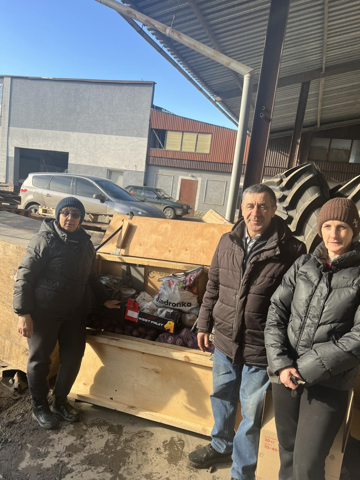 Цього ж дня Анатолій Козак та Микола Тимощук привезли з Гальчинець та Єлизаветполя чимало мішків картоплі, була і цибуля, сало, макарони. Бо є на такі овочі запити. Збір у цих селах організувала мама бійця, волонтерка Людмила Антосєва з Гальчинець. Ще трохи довантажилися у Малому Лазучині в Олени Ющук. Всього привезли н склад штабу до тонни овочів та продуктів.