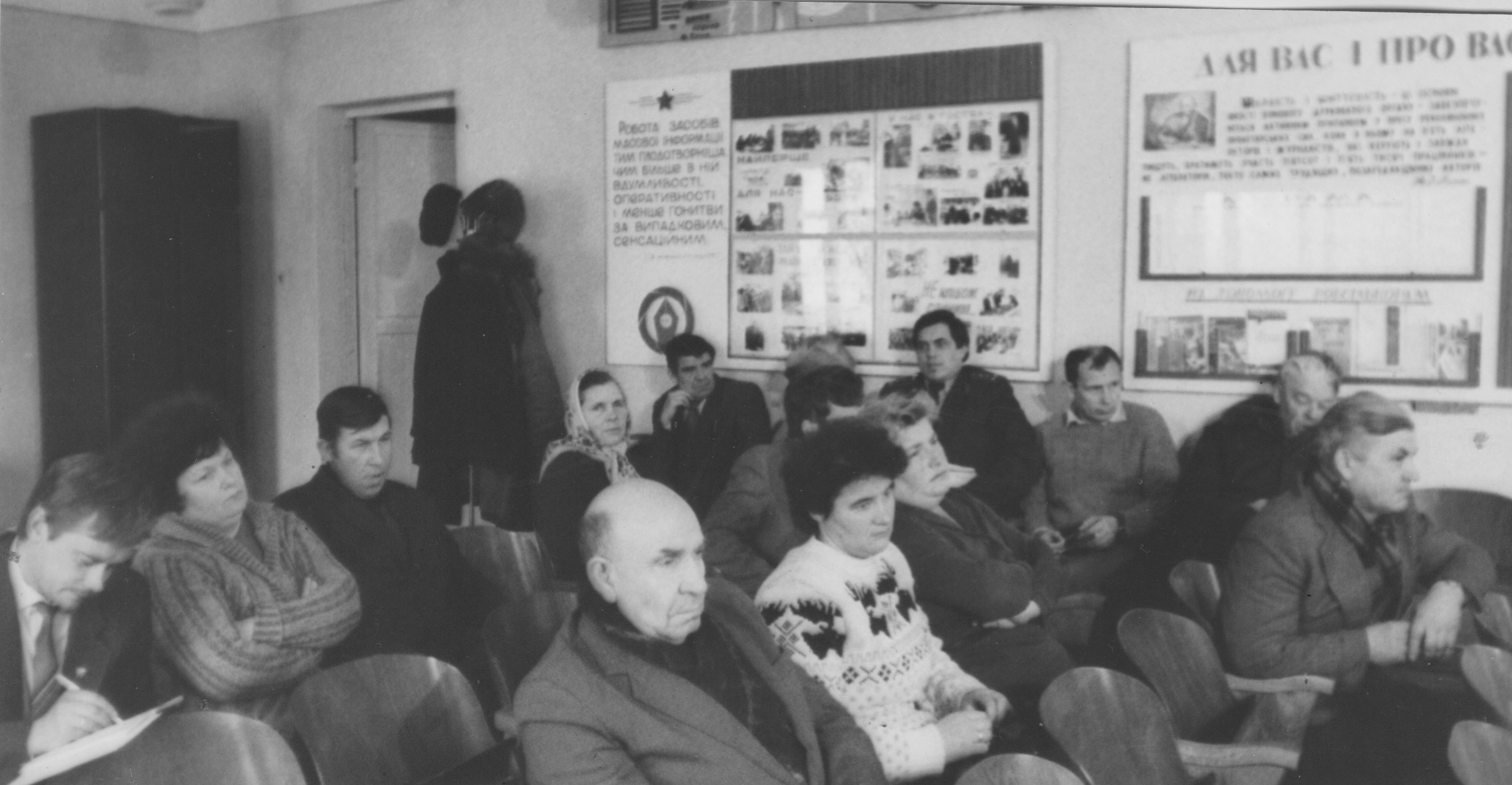 А ось ще невеличкий фотофрагмент однієї з нарад позаштатних творців районного часопису. Тут ми бачимо серед знайомих облич ще Віктора Омеляновича Лебединського, Володимира Мартинюка з Теофіполя, Василя Воробчука з Гальчинець, Володимира Лавренюка з Ільковець.