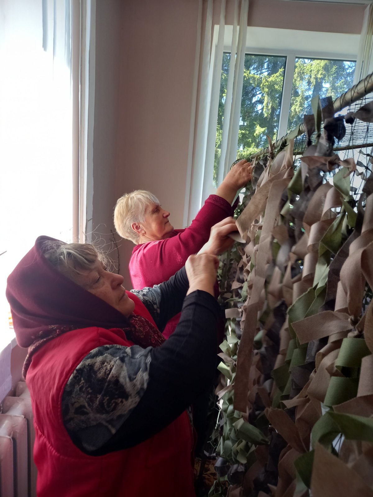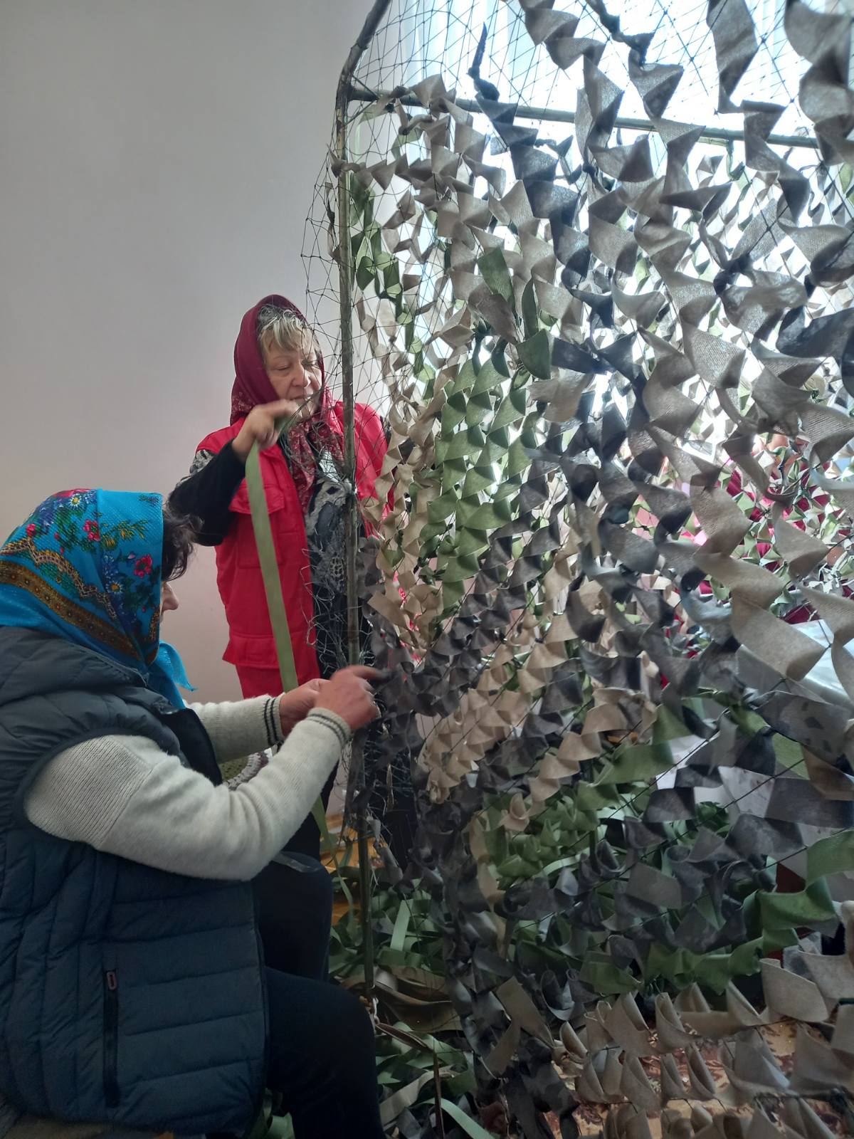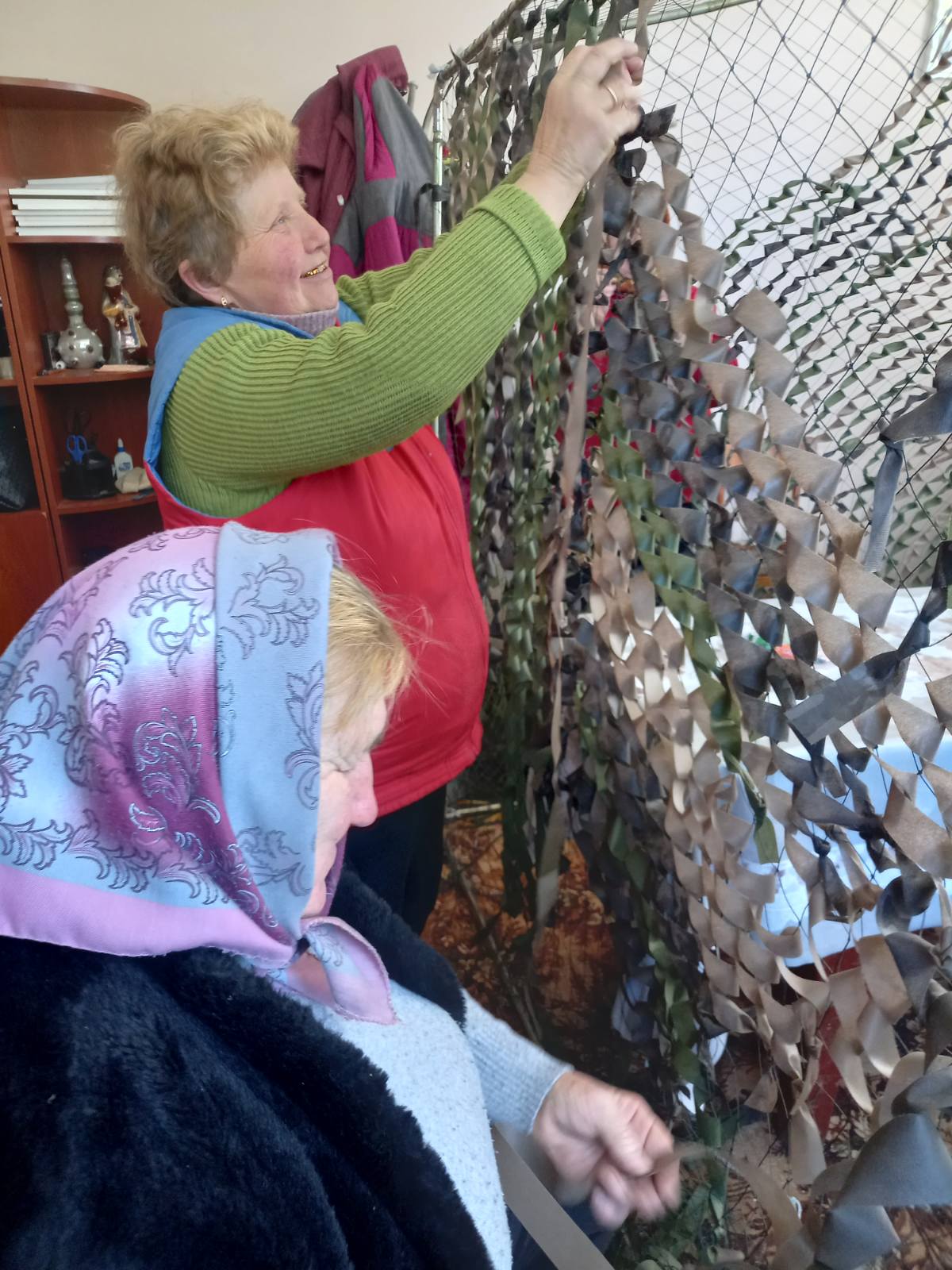 Тому ми знову пишемо про «Святецьких волонтерочок», неймовірних жінок, які четвертий рік збирають продукти довготривалого зберігання, роблять закрутки, сушать сушину, б’ють горіхи для енергетичних батончиків, проводять благодійні ярмарки, збирають кошти чи долучаються до зборів на закупівлю спеціального обладнання та спорядження для військових, збирають одяг для поранених у госпіталях. І, найголовніше, плетуть маскувальні сітки. Бо вони дуже потрібні на фронті, аби маскувати техніку, бліндажі, аби виконувати бойові завдання та вберегти воїнів. І тому на них є постійні запити.