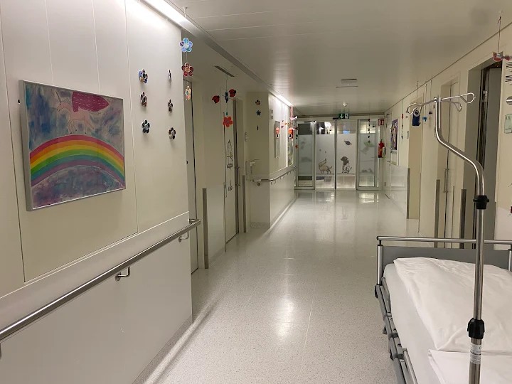 Біля кожного медичного ліжка, яке обладнане електричним пультом керування та кнопкою виклику медперсоналу знаходиться тумбочка з додатковою панелю, яка слугує також столиком, коли хворий не може чи не хоче сидіти за більшим столом. Незвичним для нас, українців, є час харчування: сніданок приносять близько 7 години ранку, обід ( перша страва + друга страва + десерт) доставлять о 12:00, а вечеряти доведеться після 17:00. Родичі та знайомі можуть відвідати хворих тільки у визначені для цього години. Зазвичай вони приносять лише квіти, а вазу для них беруть на посту медсестри. Домашню їжу ніхто нікому не несе, у цьому немає ніякої потреби.