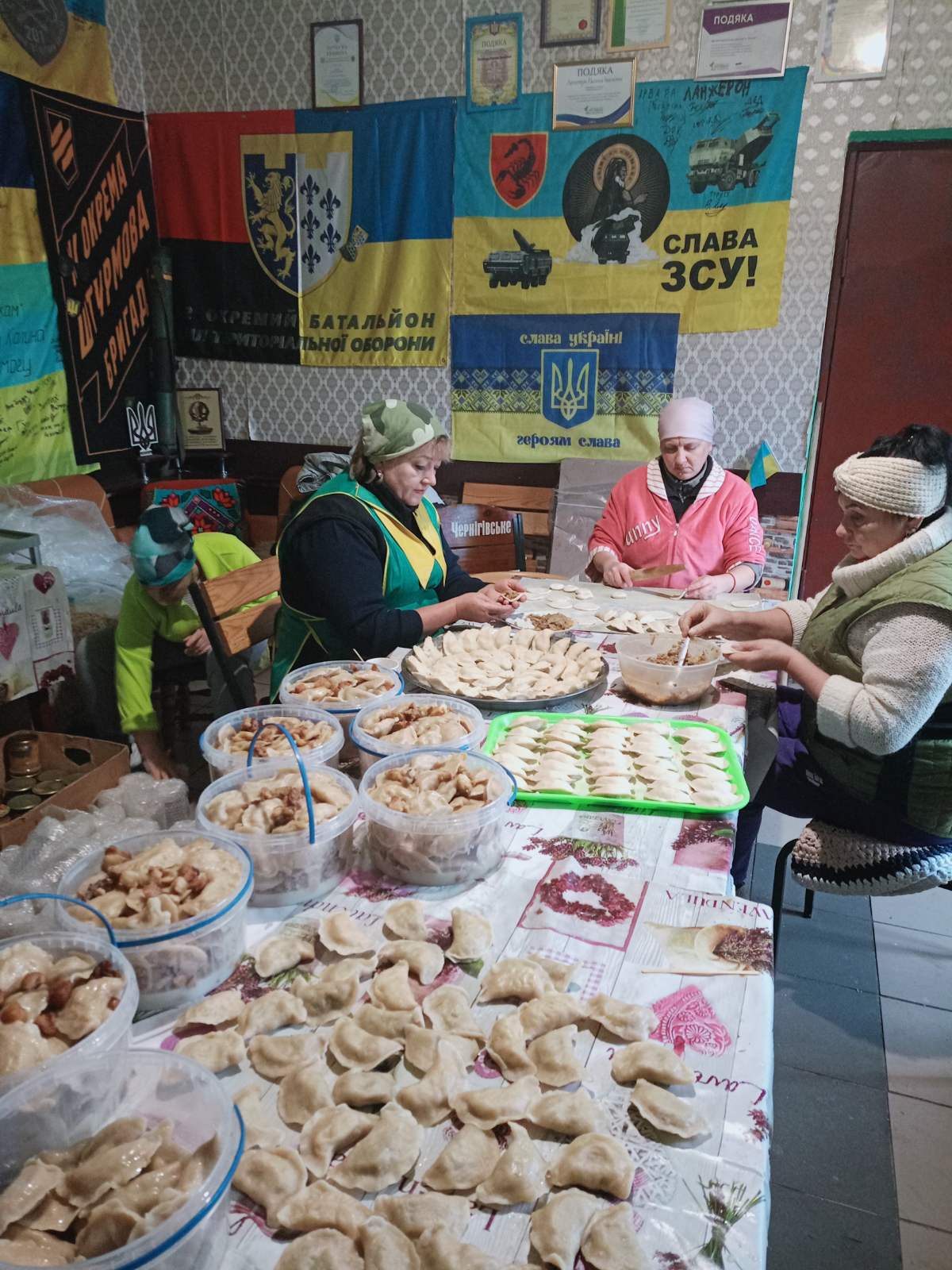 - Щоб надіслати посилки з продуктами, щоб виконати запити бійців, - каже Наталія Гонюк, - потрібні продукти, щоб з них щось приготувати, потрібні кошти. Тому ми постійно дякуємо всім, хто допомагає нам це зробити. Тож дякуємо всім, хто долучається до акцій Гуманітарного штабу Теофіпольщини, надає продукти, відгукується на збори. Окремо висловлюю щиру вдячність Андрію та Ользі Дзюбакам з Новоставець, які завжди надають нам овочі, а ось тепер надали багато капусти. Дякуємо Василю Окаєвичу, який замовляє та надає нам вологі серветки, ми вкладаємо їх у кожну посилку. Далі 7 листопада разом з Анатолієм Козаком ми зробили велике відправлення на Харківський напрямок. Поклали у посилки сало, салати, тушонку, варення, макарони, цукор, чаї, засоби гігієни, теплі рукавиці, в’язані шкарпетки від Анасії Плескачової з селища цукрового заводу. Допомагала нам мама бійця Тетяна Сіверська з Новоставець. А в суботу, 8 листопада, ми з Оленою Глов’юк відправили посилки на Сумський напрямок, це каші, тушонки, салати. А постійно їх готують наші невтомні подруги з Кривовільки – Надія Вальчук, Валентина Братюк, Катерина Паранюк, Тетяна Сивак, Тетяна Вальчук.