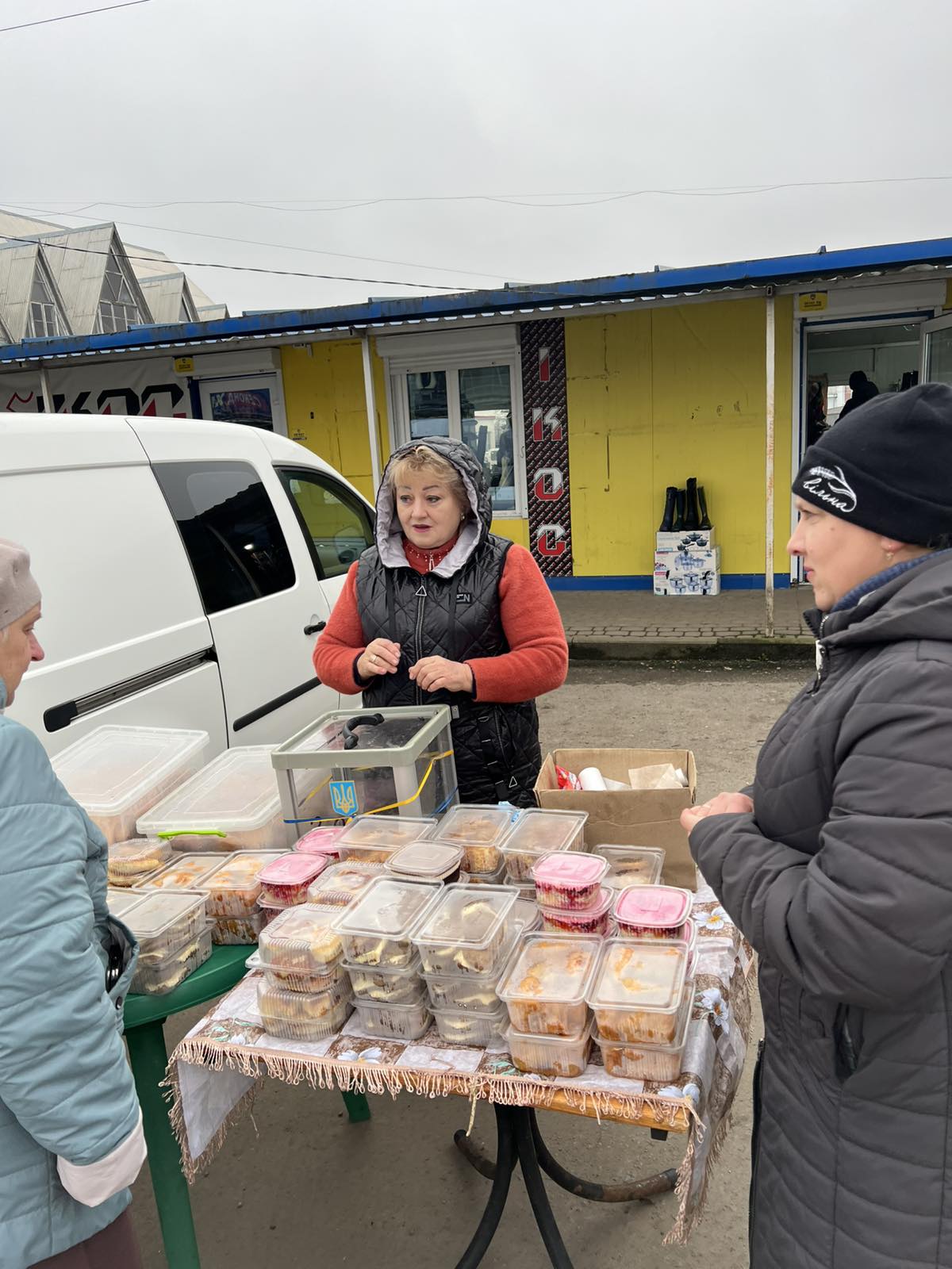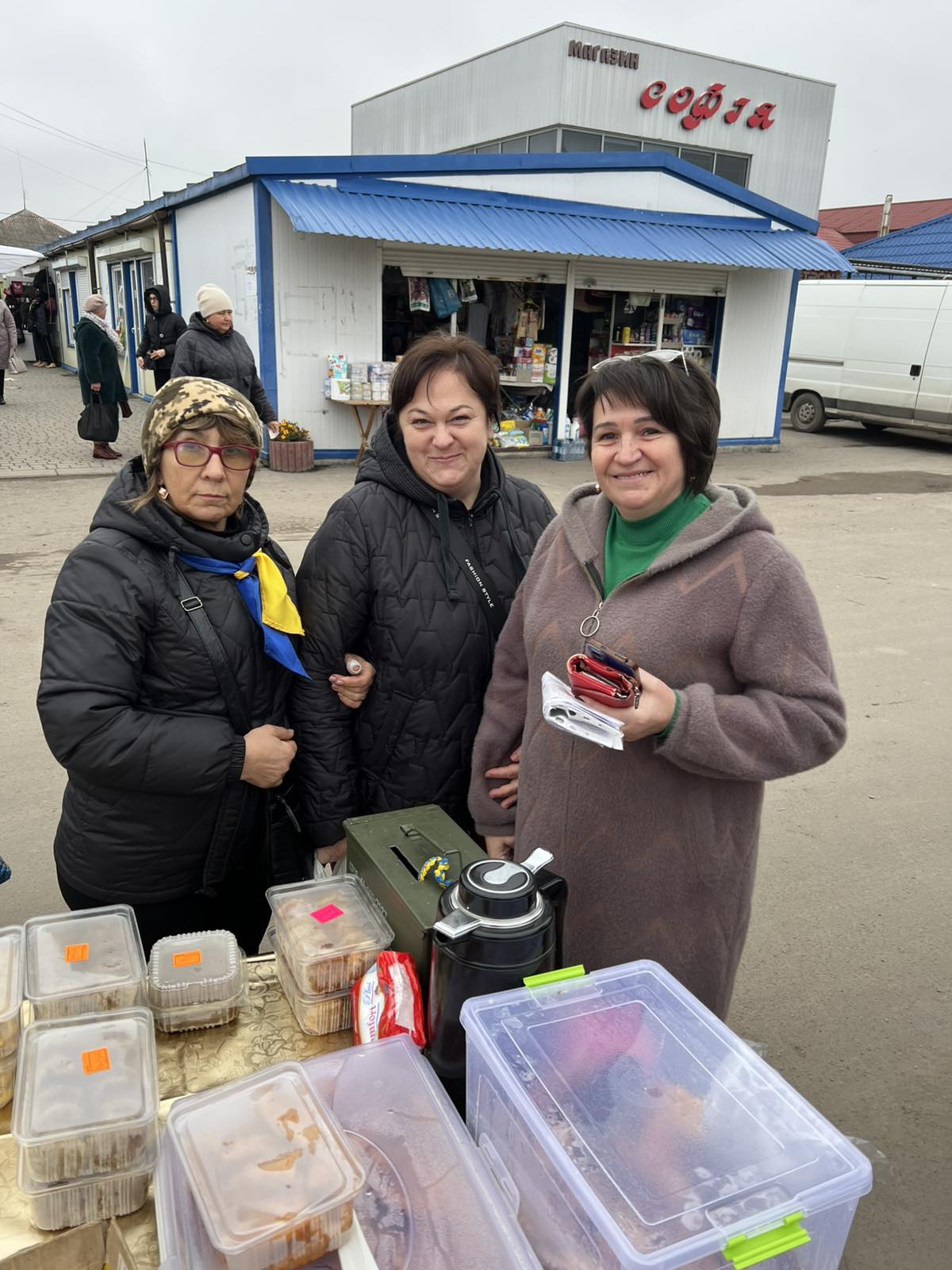 У неділю, 16 листопада, обидві групи Наталії Гонюк (Новоставці-Кривовілька) та Галини Лепетун (Колки) провели благодійний ярмарок у Теофіполі. Наготували Новоставці та Квивовілька усякої смакоти – млинці, налисники, голубці, пиріжки, картоплянки, вареники, сир, солодощі. І Колки постаралися, приготували котлети, голубці, бризолі, налисники з сиром, шубу, біляші, смажені пиріжки з м’ясом, желе. Хоч було досить прохолодно, ще й накрапав дощ, завітали люди, все розкупили. Хоч трохи померзли Наталія Гонюк, Олена Глов’юк, Майя Окаєвич, Лілія Хитрун та Галина Глабай, але нічого, вони загартовані. Бо ж треба частину зароблених коштів спрямувати на виконання запитів бійців, на закупівлю продуктів для посилок та наступного ярмарку.