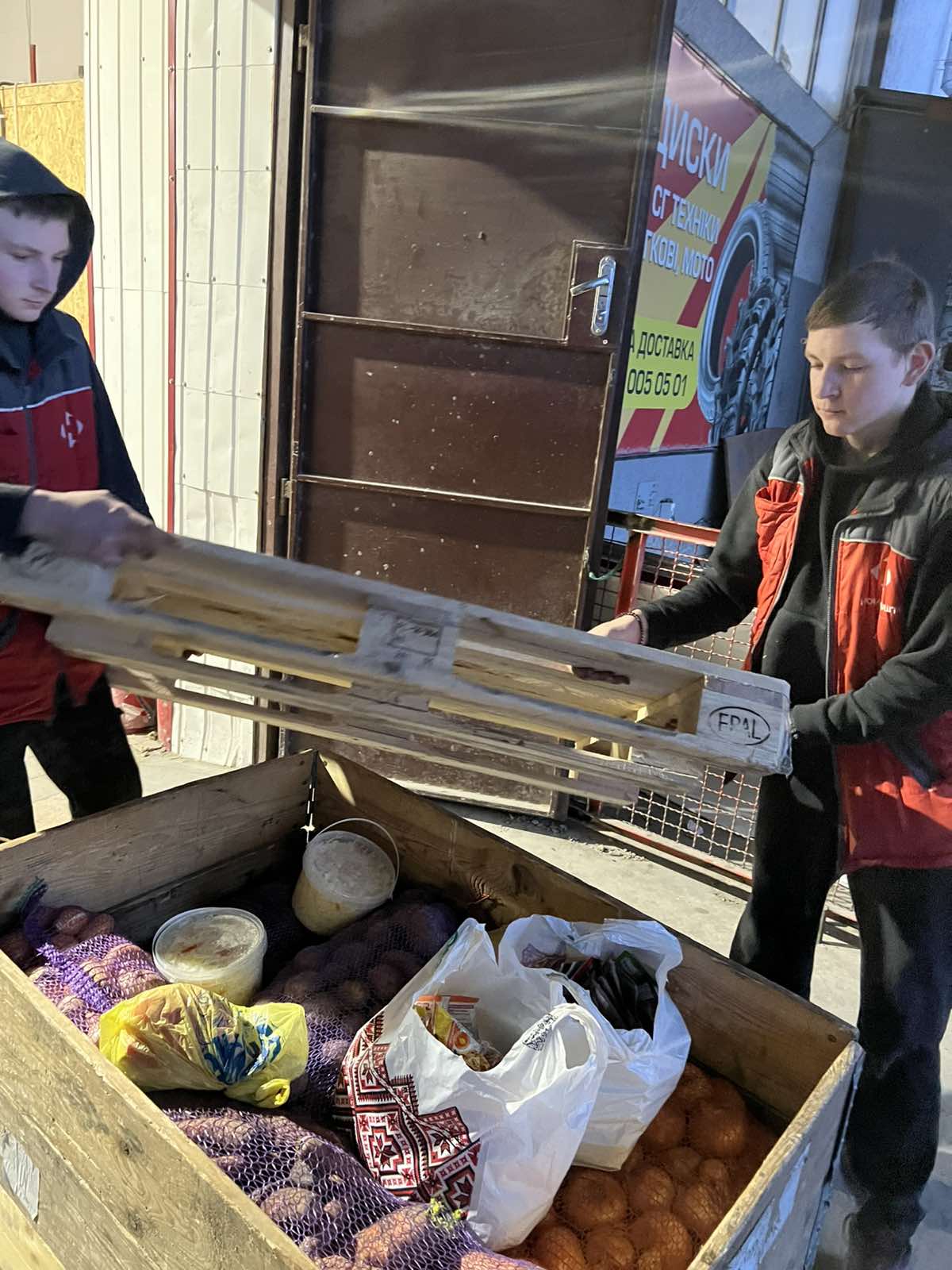 У четвер, 13 листопада, Наталія Гонюк з Галиною Лепетун завантажили зі складу штабу бус волонтера, учасника бойових дій Дениса Лисенка з Старокостянтинівщини картоплею, морквою, цибулею, столовими буряками, консервацією, яблуками, цукром. А Галина Лепетун надала відерця та салати, які приготували її невтомні подруги з Колок. Все це повіз хлопець на схід, на Сумський та Донецький напрямки.