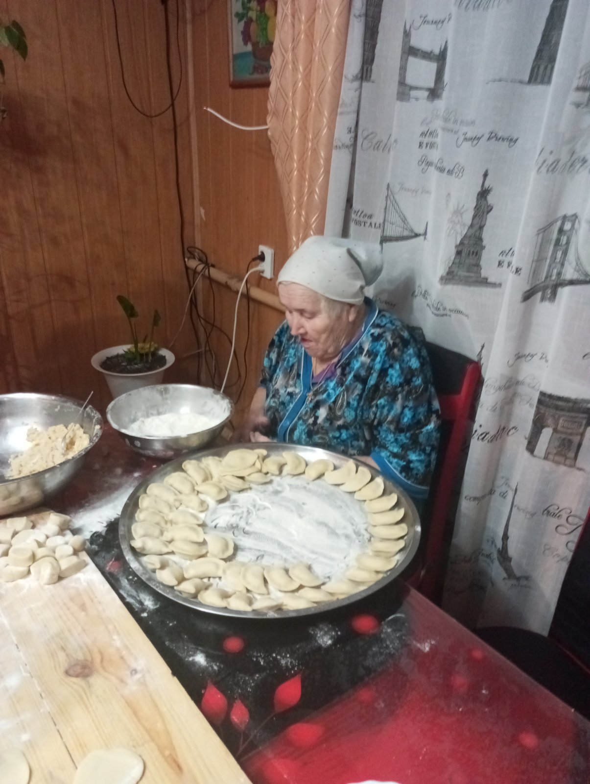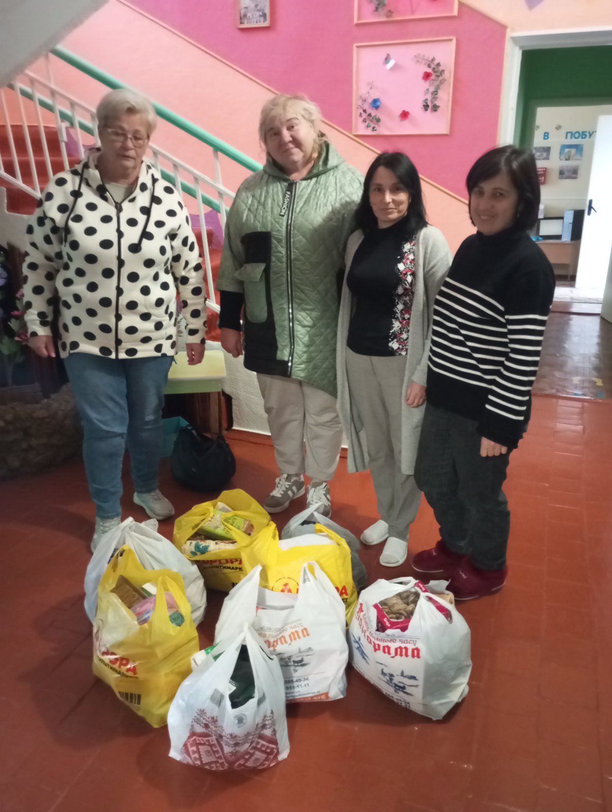 - Тому знову хочу подякувати підприємцям з Теофіполя Аллі та Володимиру Казюкам, - продовжує, - бо завжди мені із знижкою продають фарш та м’ясо, надають сало; Віті та Ігорю Безкоровайним, які надають сало, наполовину дешевше продають фарш, із знижкою – м’ясо. Сало засолюємо, робимо смалець, а без фаршу як - треба його для голубців, для пельменів, для кашів, а як є м’ясо та сало, то буде тушонка. Завдяки сприяння начальника Теофіпольської дільничної лікарні ветеринарної медицини Павла Шевчука хорошу курятину нам продовжує надавати Олександр Камінський. Дякую вправним господиням, які на моє прохання випікають запашну домашню випічку, це Галина Лебідь з Кривовільки, Валентина Магдійчук, Людмила та Ліана Денисюки, Антоніна Ткачук, Тетяна Баліцька з Новоставець. Дякуємо директору Новоставецького сільського будинку культури Людмилі Довжук, з кожного благодійного ярмарку надають нам кошти. Дякую моєму Новоставецькому ліцею, з благодійних ярмарків надають мені печиво, каву, чай, мівіну, засоби гігієни. Завжди зворушують мене працівники, дітки та їх батьки з дитячого садочка «Бджілонька» з Теофіполя, адже передають печиво, шкарпетки, каву, чай, засоби гігієни, малюнки. Підтримують мене отець Дмитро та паніматка Олена, надають муку, цукор, печиво, пластиковий посуд, хоч паралельно працюють з капеланом при Хмельницькій єпархії Православної Церкви України, долучаються до відправлення великих вантажів з продуктами у зону бойових дій. Радію, що допомагають підприємці з Новоставець Ольга Марценюк та Юлія Рудик, надають продукти, шкарпетки, серветки, рушники. Не раз коштами підтримувала підприємець з Теофіполя Ольга Гончар. Тож всі ці люди – волонтери, як і ми. Якби не було їх, не було б нас.