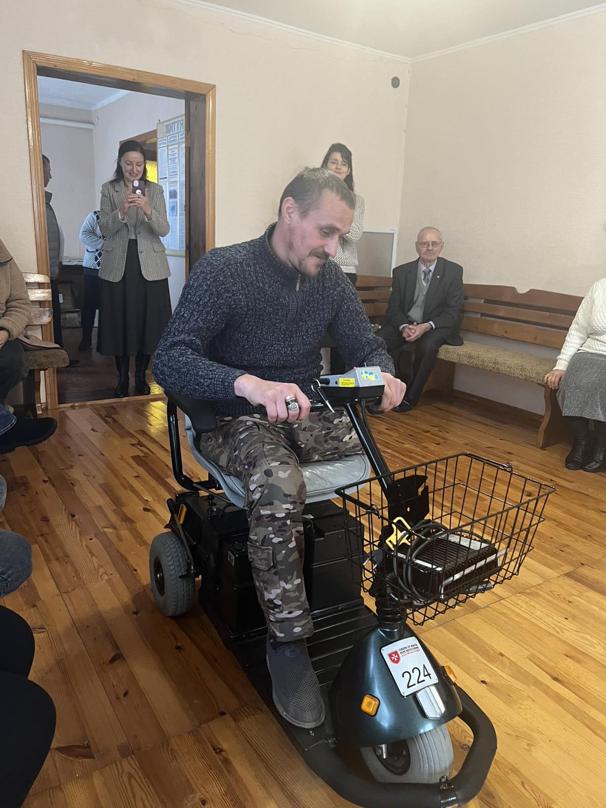 • Дякую всім, хто конкретно нас підтримує, - каже Наталія Гонюк, - і цього разу, і завжди. Дякуємо Гуманітарній Новій пошти за промокоди, завдяки чому ми можемо відправляти посилки безкоштовно. Дуже радіємо, коли вдається виконати запит бійців, як от спільно з групою Галини Лепетун нам вдалося зібрати 20 тисяч гривень ( це і кошти з благодійних ярмарків, і донати) на дуже якісний дрон для підрозділу нашого бійця-земляка Богдана Петлюка (Гаївка-Волиця-Польова). Хочу розказати і про таке: у суботу ми з Майєю Окаєвич побували на одному зібранні. Запросив нас у помешкання хороших людей у Теофіполі волонтер,  військовий капелан з Волочиська Андрій Махновський. У відповідністю з певною релігійною програмою він привіз два електричних скутери для ветеранів Івана Галевського з Михнівки та Ігоря Гоцака з Підлісок. Ці бійці отримали важкі поранення, втратили кінцівки, один – одну, другий – дві. Ми були вражені, дуже високу ціну заплатили ці  хлопці за нашу свободу. Але, слава Богу, вони живі. Звісно, легше тому, хто живе в сім’ї, хто живе сам ( хоч поруч близькі родичі),  все рівно це дуже важко. Тож ми вирішили турбуватися про таких ветеранів.  А цього дня надали їм пакети з продуктами та солодощами.