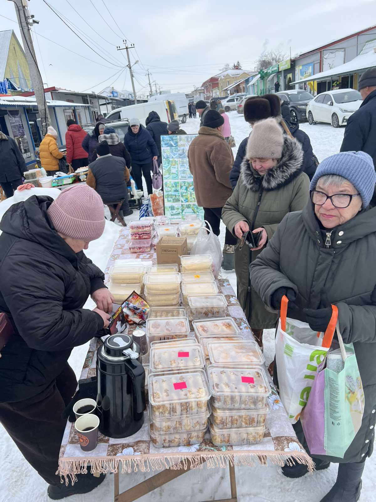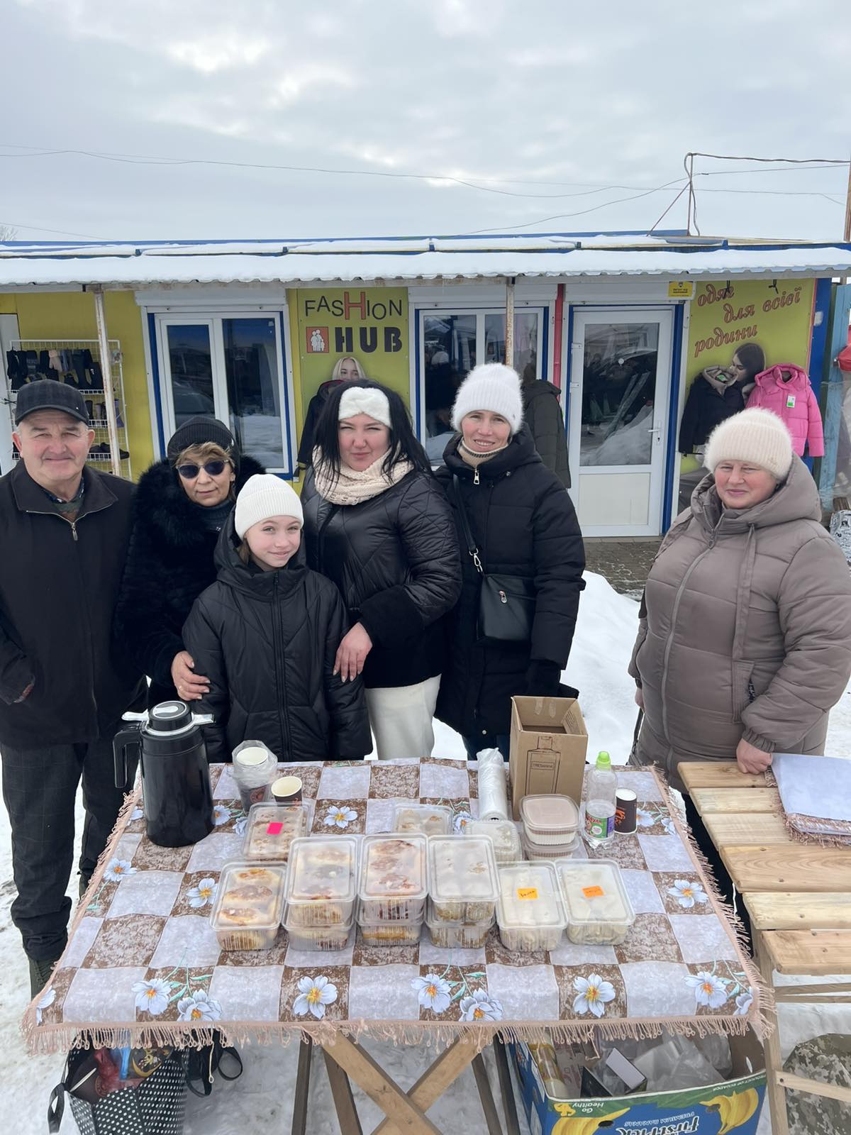 А вже в неділю цей підрозділ підготував та провів у Теофіполі благодійний ярмарок. Як завжди, наготували усілякої смакоти – котлети, голубці, гречаники, вареники, налисники з сиром та вишнями, солодощі. Прийшли люди, розкупили, вторгували 12 тисяч гривень. Ці кошти спрямують на придбання продуктів на наступне відправлення посилок, от вже закупили газові балончики, на 5 тисяч гривень – курятину, на 1500 гривень – одноразовий посуд. А також для наступного ярмарку у неділю 1 березня, адже отримали запит від військових для придбання газозварювального апарату.